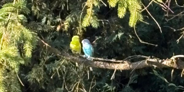 2 Parakeets ....from Australia per a whytegate neighbor are loose in the Surrey lane area. Please do not approach them, but if they attack you - Run as fast as you can and call Animal control. Be safe out there Whytegate area!
